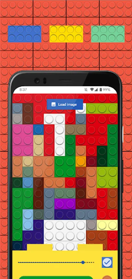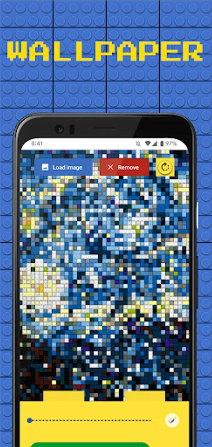 Customize your phone wallpaper with popular building bricks. Select an image from your gallery or generate a new image every time you see your phone automatically. Customize the size of the bricks and enjoy a new wallpaper. Simple and original wallpapers for your devices.