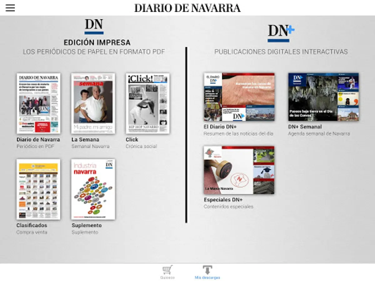 - Print edition. Every day the PDF version of the three editions of Diario de Navarra (Pamplona, Tudela and Ribera and Tierra Estella) and supplements that are published in the newspaper: Week, DFD, Click, Classifieds and Special.