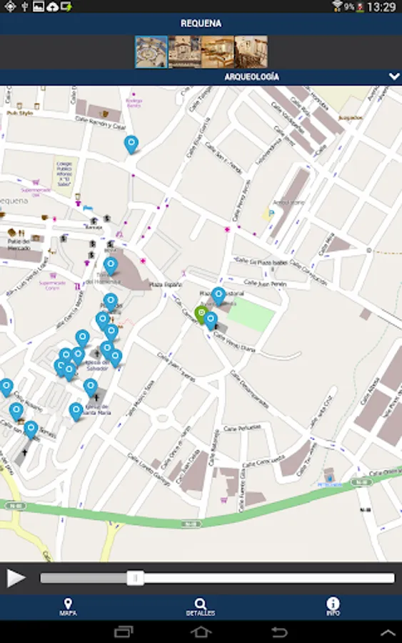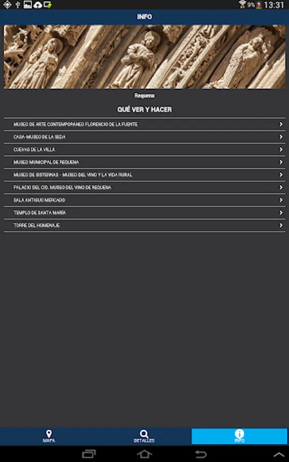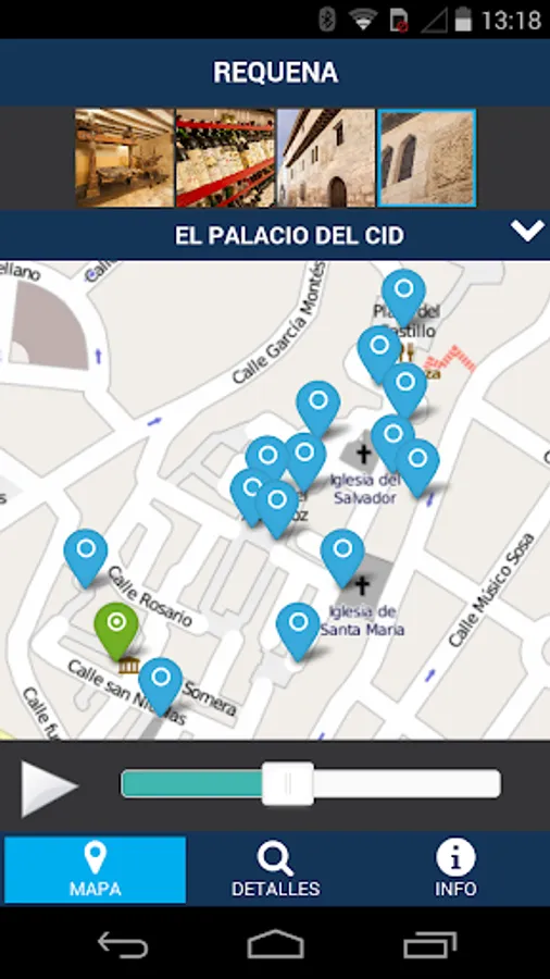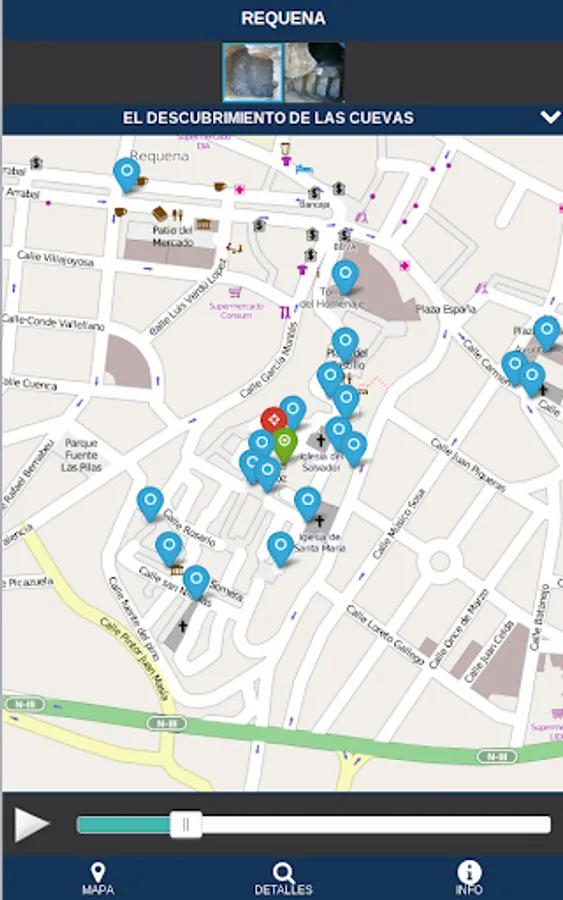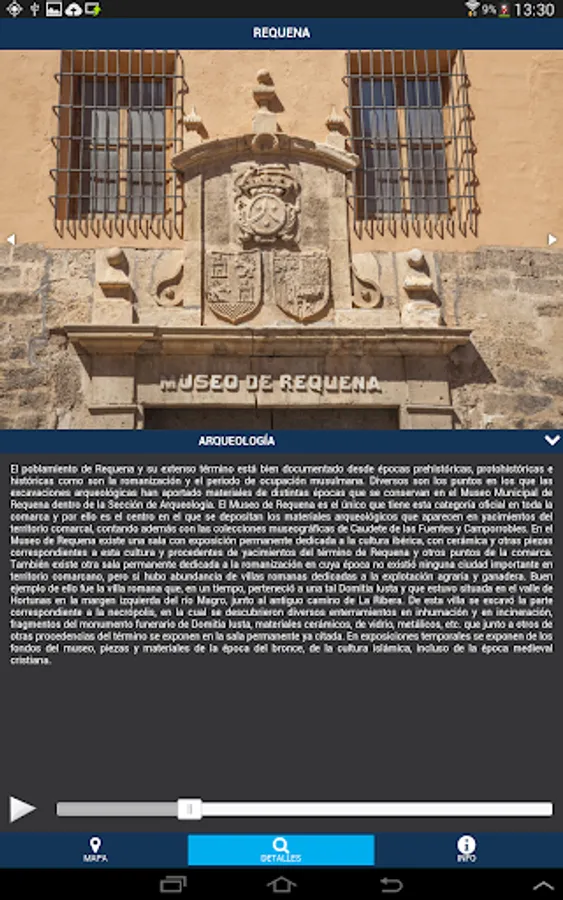 The headsets allow you to delve into the knowledge of requenense heritage. You know the labyrinthine underground network of caves; some of its most important monuments like the Palace of the Cid, excellent and varied religious architecture; the historic urban fabric of the city; its extensive network of museums; their most important archaeological sites and natural and scenic values as the Natural Park.