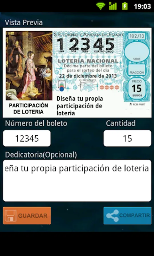 Design your own Christmas lottery shares and share them with friends and family through social networks (or imprimiendotela)