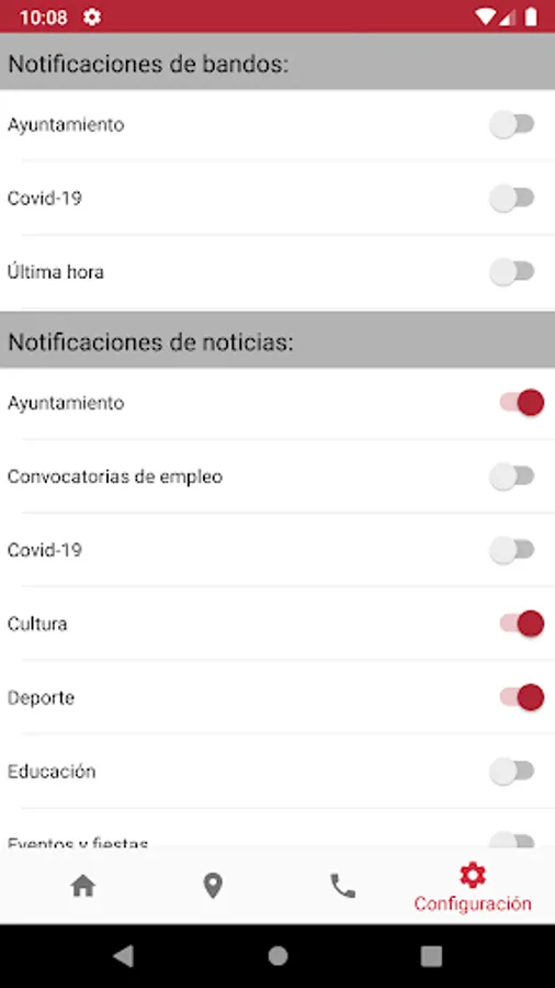 If the citizen is interested in receiving notifications of new content, they must consent to the sending of notifications by the City Council, enabling them through the "Application notifications" menu of their Android operating system, and selecting in the mobile application the contents about which you want to be notified from the configuration option of the main menu. This consent can be withdrawn with the same ease with which it was given, through the indicated means, without affecting the notifications received before the withdrawal. You can obtain more information in the "Privacy Policy" section.