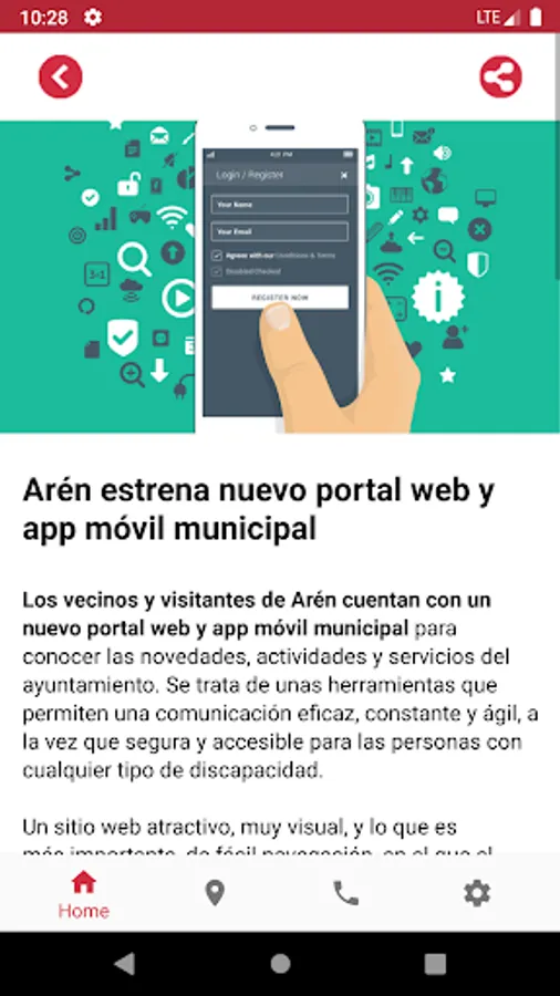 "Ayuntamiento de Arén" is the official mobile application of the Arén City Council, a voluntary and unidirectional means of communication through which citizens receive information on services and all the news of the municipality.