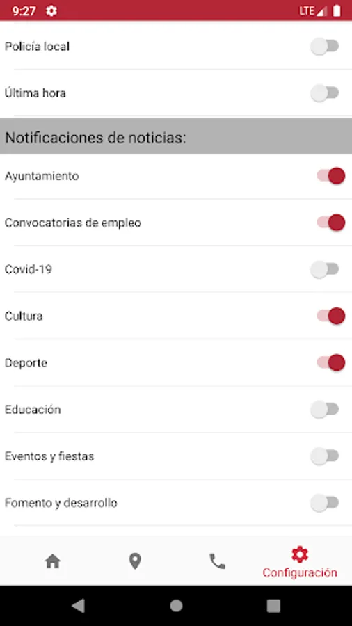 If the citizen is interested in receiving notifications of new content, they must give their consent to the sending of notifications by the City Council, enabling them through the "Application notifications" menu of their Android operating system. In addition, you can select in the mobile application the contents about which you want to be notified from the configuration option of the main menu. This consent can be withdrawn with the same ease with which it was given, through the indicated means, without affecting the notifications received before the withdrawal. You can obtain more information in the "Privacy Policy" section.