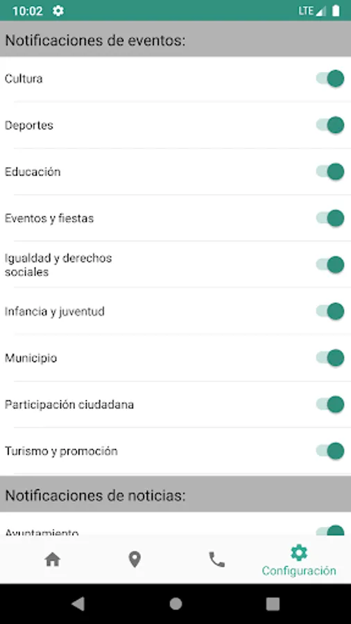 If the citizen is interested in receiving notifications of new content, they must consent to the sending of notifications by the City Council, enabling them through the "Application notifications" menu of their Android operating system, and selecting in the mobile application the contents about which you want to be notified from the configuration option of the main menu. This consent can be withdrawn with the same ease with which it was given, through the indicated means, without affecting the notifications received before the withdrawal. You can obtain more information in the "Privacy Policy" section.