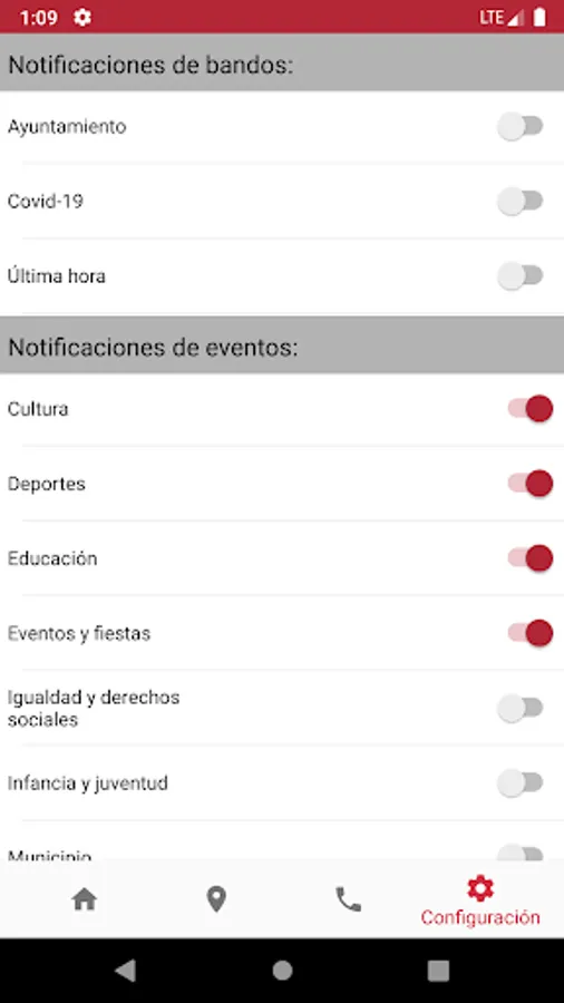 If the citizen is interested in receiving notifications of new content, they must give their consent to the sending of notifications by the City Council, enabling them through the "Application notifications" menu of their Android operating system. In addition, you can select in the mobile application the contents about which you want to be notified from the configuration option of the main menu. This consent can be withdrawn with the same ease with which it was given, through the indicated means, without affecting the notifications received before the withdrawal. You can obtain more information in the "Privacy Policy" section.