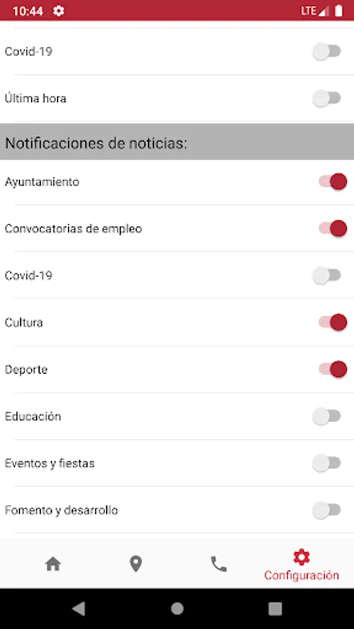 If the citizen is interested in receiving notifications of new content, they must give their consent to the sending of notifications by the City Council, enabling them through the "Application notifications" menu of their Android operating system. In addition, you can select in the mobile application the contents about which you want to be notified from the configuration option of the main menu. This consent can be withdrawn with the same ease with which it was given, through the indicated means, without affecting the notifications received before the withdrawal. You can obtain more information in the "Privacy Policy" section.