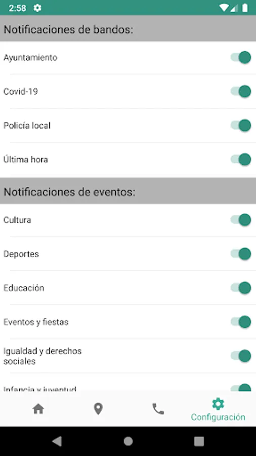 If the citizen is interested in receiving notifications of new content, they must consent to the sending of notifications by the City Council, enabling them through the "Application notifications" menu of their Android operating system, and selecting in the mobile application the contents about which you want to be notified from the configuration option of the main menu. This consent can be withdrawn with the same ease with which it was given, through the indicated means, without affecting the notifications received before the withdrawal. You can obtain more information in the "Privacy Policy" section.