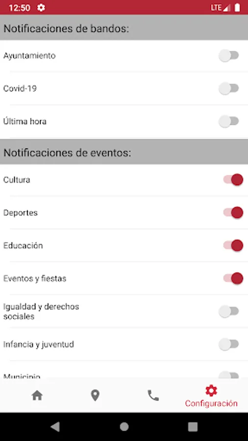 If the citizen is interested in receiving notifications of new content, they must give their consent to the sending of notifications by the City Council, enabling them through the "Application notifications" menu of their Android operating system. In addition, you can select in the mobile application the contents about which you want to be notified from the configuration option of the main menu. This consent can be withdrawn with the same ease with which it was given, through the indicated means, without affecting the notifications received before the withdrawal. You can obtain more information in the "Privacy Policy" section.