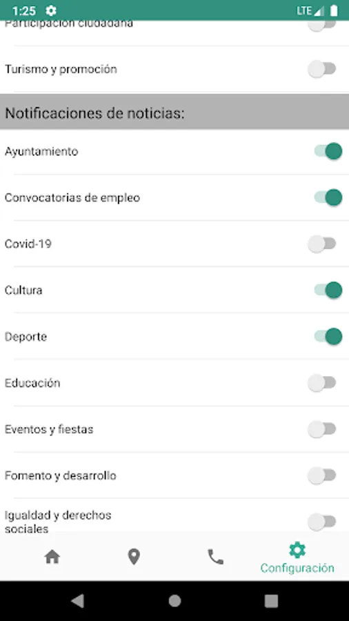 If the citizen is interested in receiving notifications of new content, they must give their consent to the sending of notifications by the City Council, enabling them through the "Application notifications" menu of their Android operating system. In addition, you can select in the mobile application the contents about which you want to be notified from the configuration option of the main menu. This consent can be withdrawn with the same ease with which it was given, through the indicated means, without affecting the notifications received before the withdrawal. You can obtain more information in the "Privacy Policy" section.