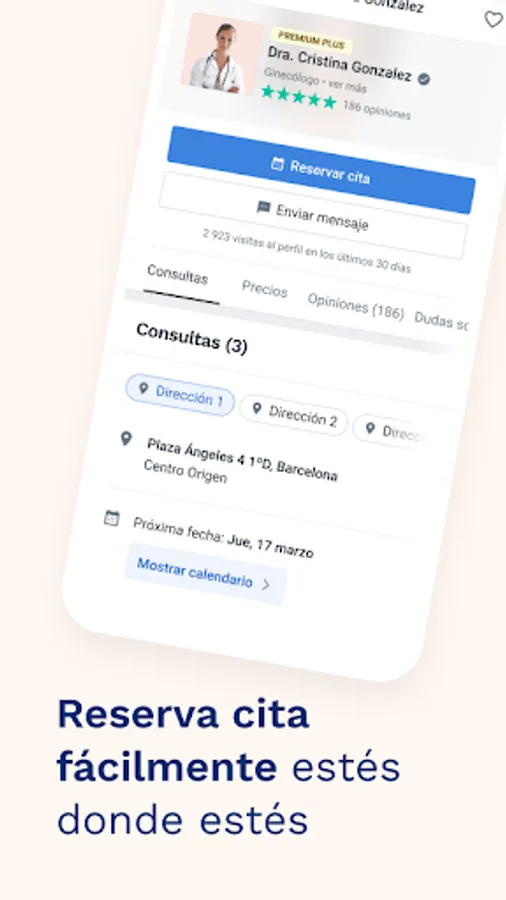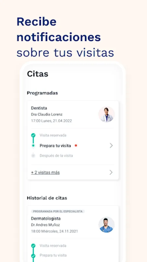 ★ Appointment management. Through your patient profile you can manage all your appointments: confirm, modify, cancel and even contact your specialist.