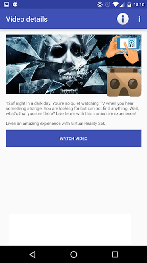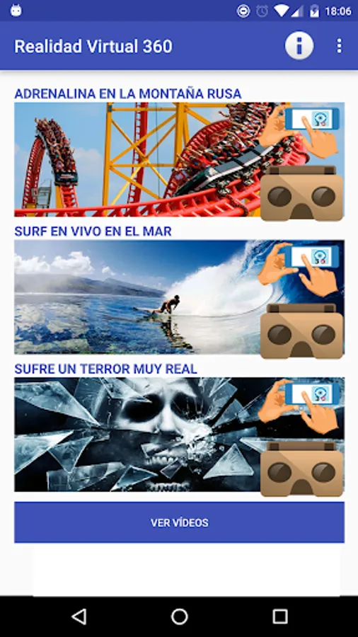 RV360 our app Virtual Reality 360 , with it you can see the videos that we recommend , an application in which you can navigate between menus , to see the type of video you like 360 and the latest information on this technology