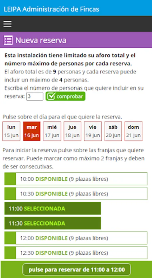 Application developed by DespachoWeb, for the management of capacity in swimming pools, with an advanced, agile, simple and automatic reservation system. The best tool to comply evenly with capacity restrictions in public places, and particularly in swimming pools