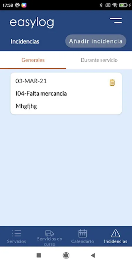 easyCourier is the easylog app to manage transport assignments, load and unload control, real-time geolocated tracking, incident management and delivery confirmation.