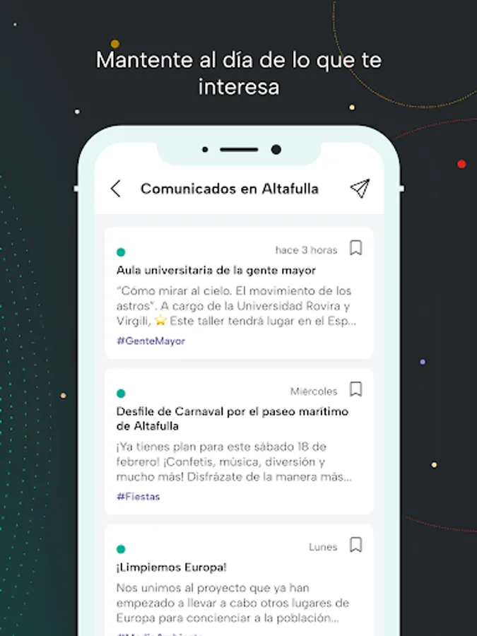 The 100% FREE connection reference App with your local environment. It will allow you to be informed of the latest news and events of your population, associations, educational centers, clubs... The network already has more than 500 agoras to which you can connect!