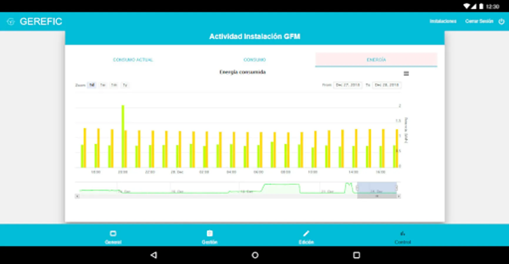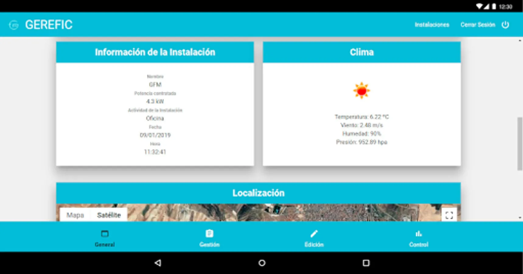 The objective of the project is to provide a universal monitoring and management system for consumption and electrical variables to be controlled, easily adaptable to any type of installation - regardless of whether it is connected to the general network or has a self-supply system-, for the control of the energy resources of companies, and that using a robust data acquisition and communication system, provide the necessary monitoring and control, using management software integrated into an application for commercial mobile devices.