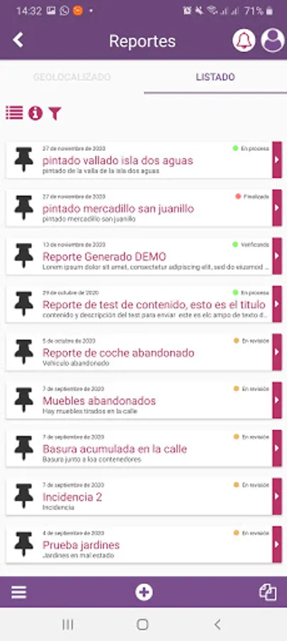 - The application allows to report georeferenced incidents, being able to insert type of