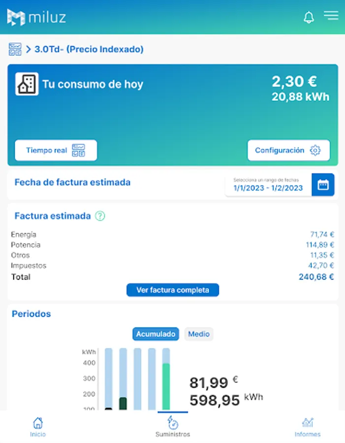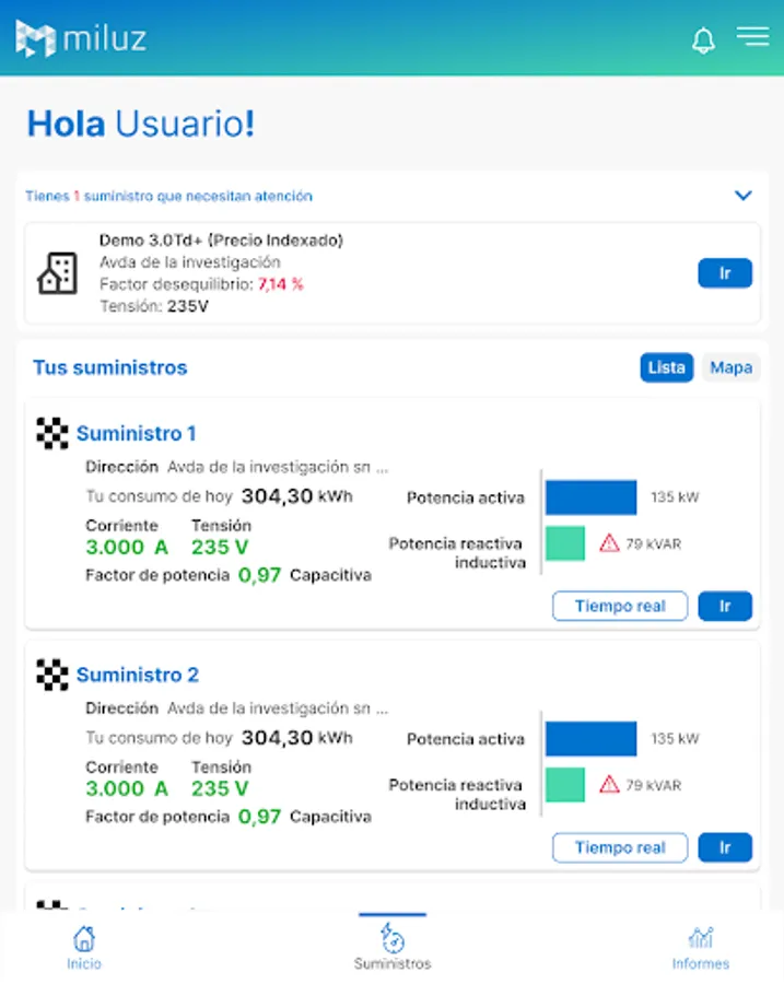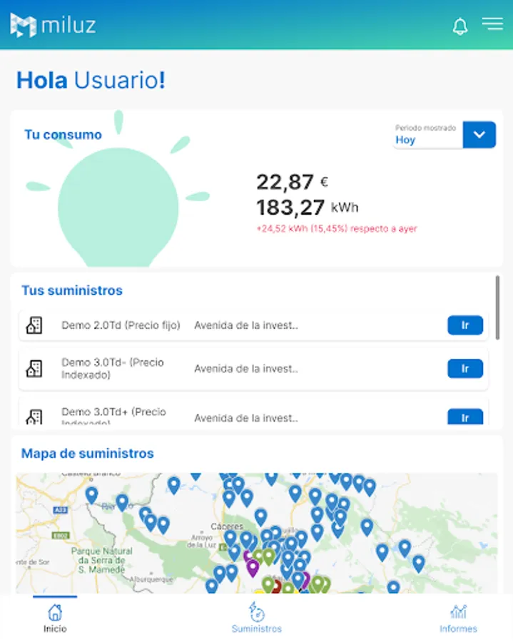 📲Monitor, manage and know the consumption of all your electrical supplies thanks to the miluz platform.