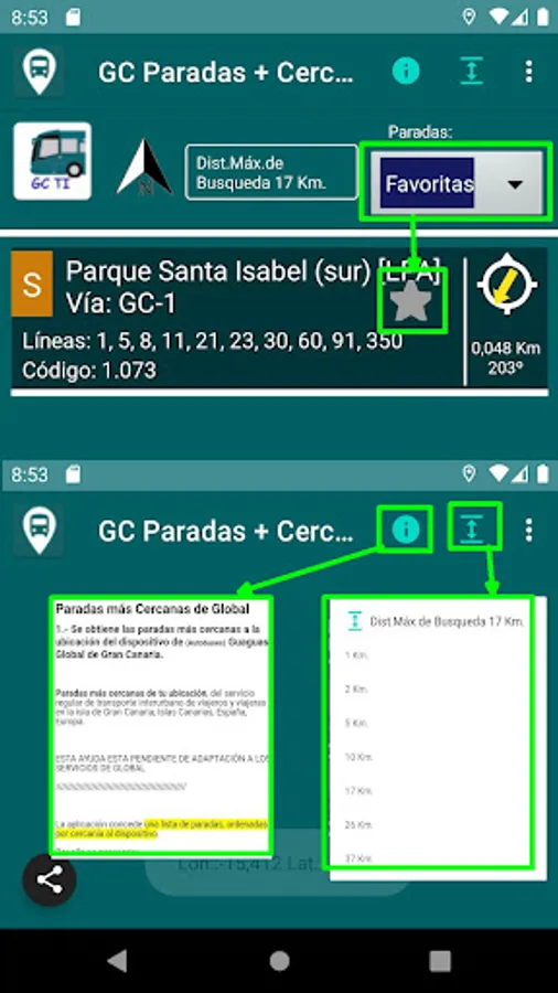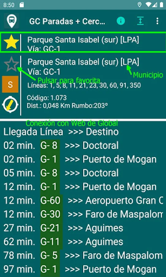 Stops closest to your location, of the regular intercity passenger transport service on the island of Gran Canaria, Canary Islands, Spain, Europe.