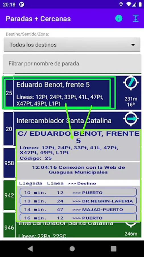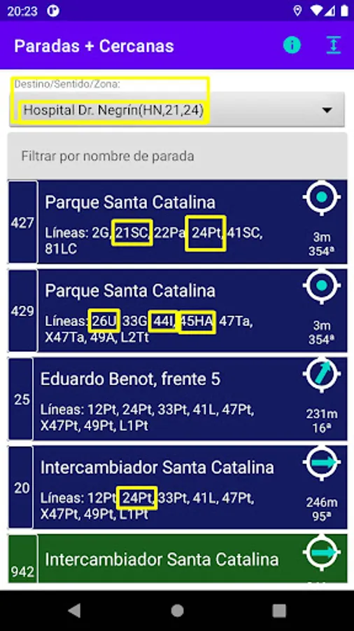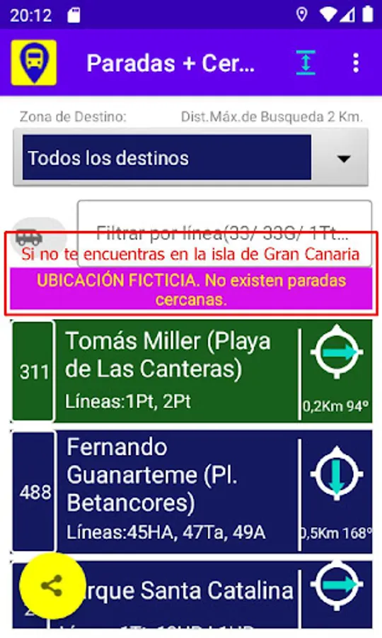 Closest stops from your location, Guaguas Municipales de Las Palmas de Gran Canarias, Canary Islands, Spain, Europe.