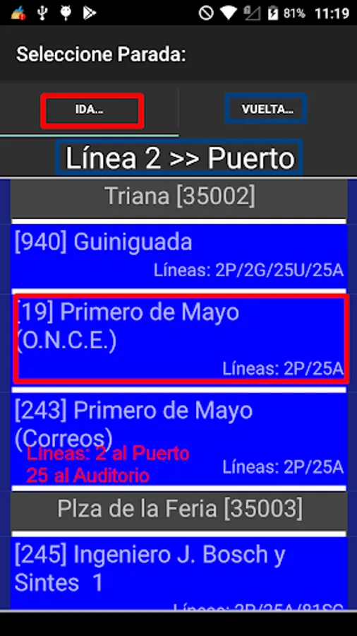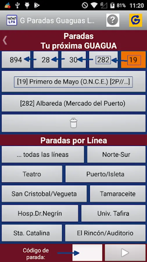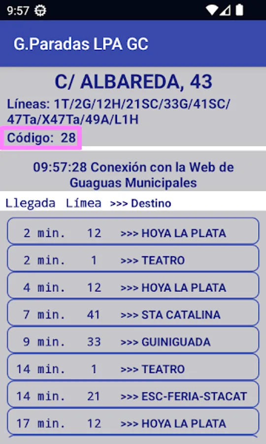 Connect with http://www.guaguas.com/paradas de Guaguas Municipales S.A. from Las Palmas de G.C. that shows how long the buses will take to reach the chosen stop.