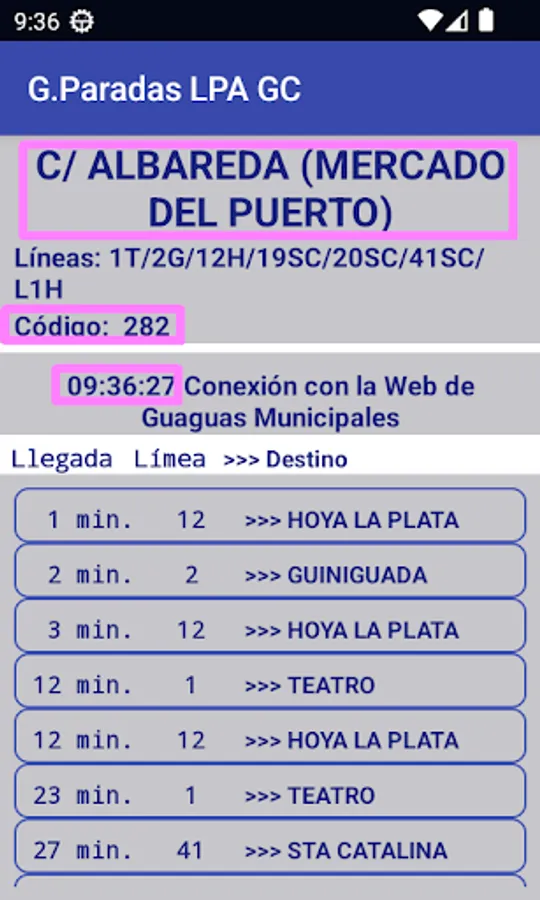 Connect with http://www.guaguas.com/paradas de Guaguas Municipales S.A. from Las Palmas de G.C. that shows how long the buses will take to reach the chosen stop.