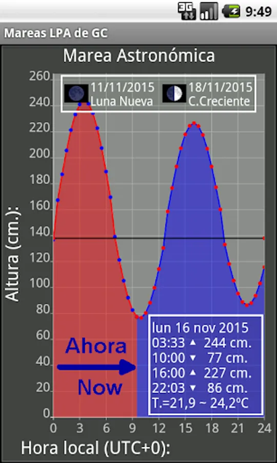 Astronomical Tides port of Las Palmas de Gran Canaria (LPA GC), Canary Islands, Spain. (15.41° W 28.15° N). It is a tide and current prediction application. High & low tides