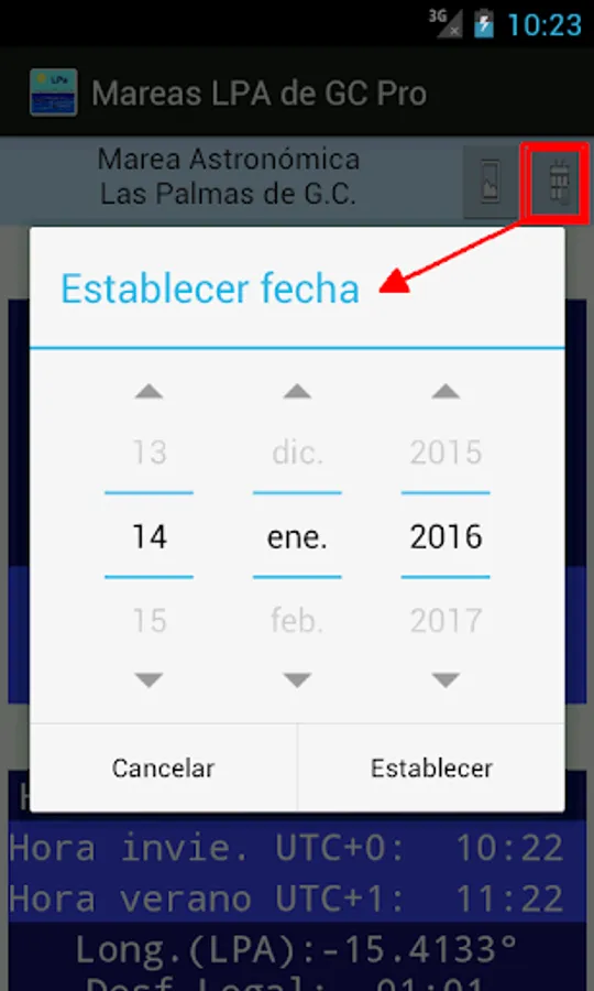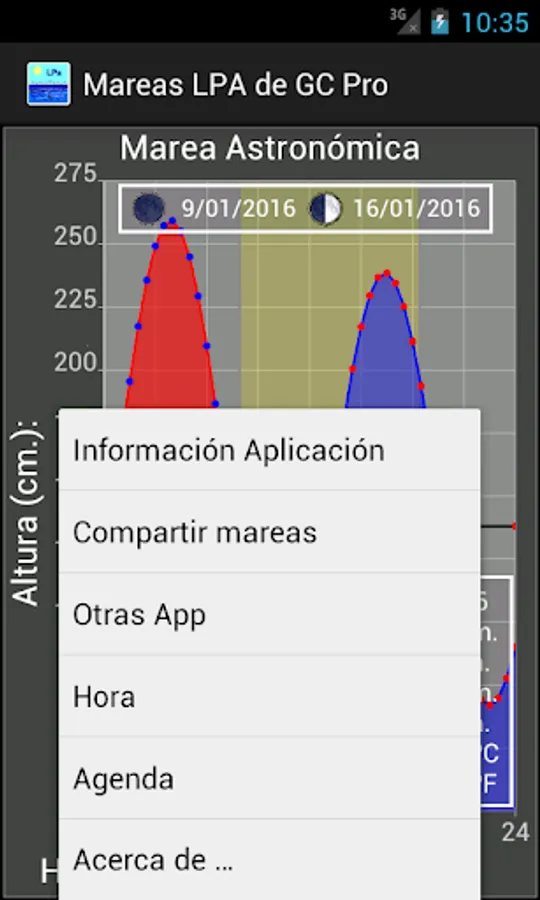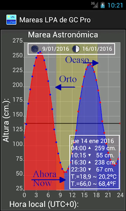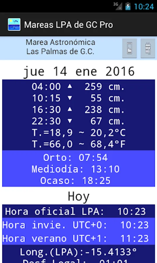 astronomical tide prediction by harmonic constants and data Mareógrafo Las Palmas G.C. Spain.