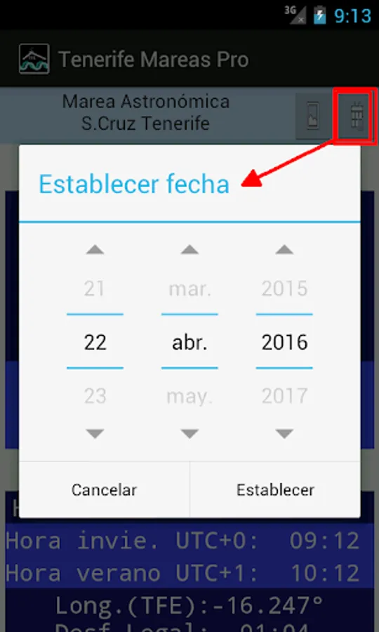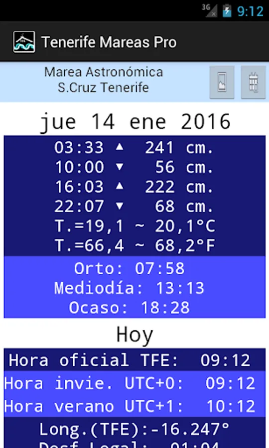 Prediction of astronomical tides Port of Santa Cruz de Tenerife (TFE)