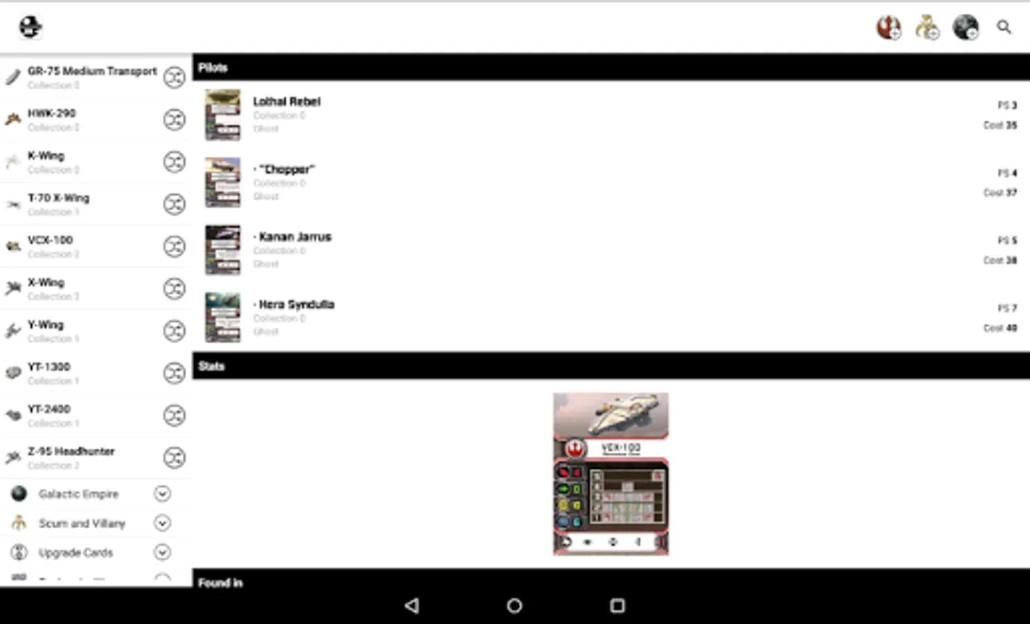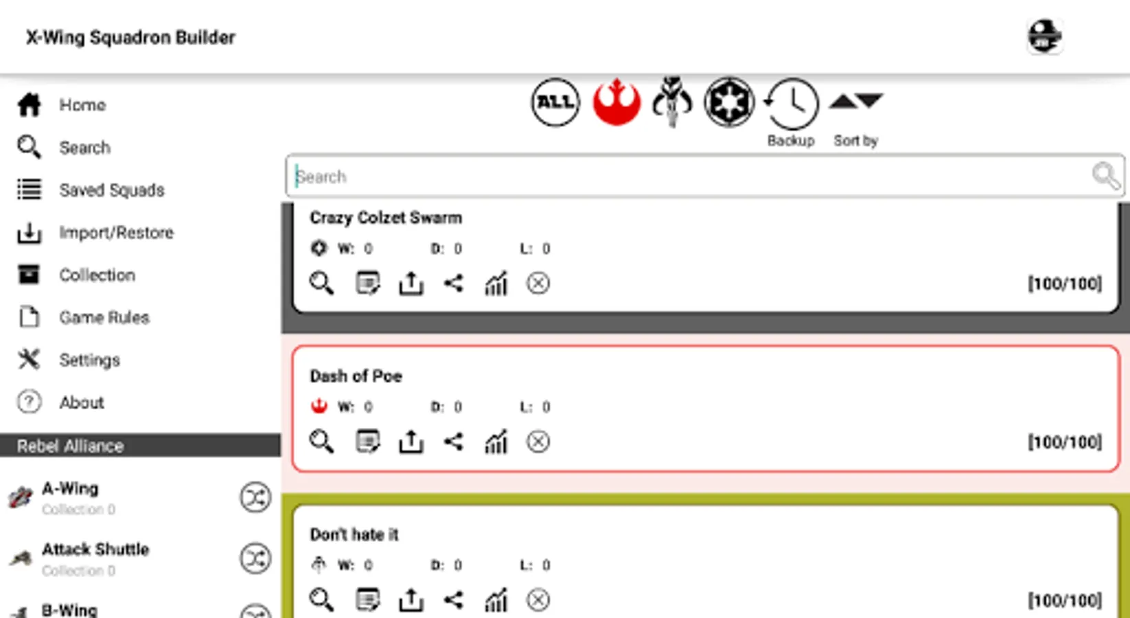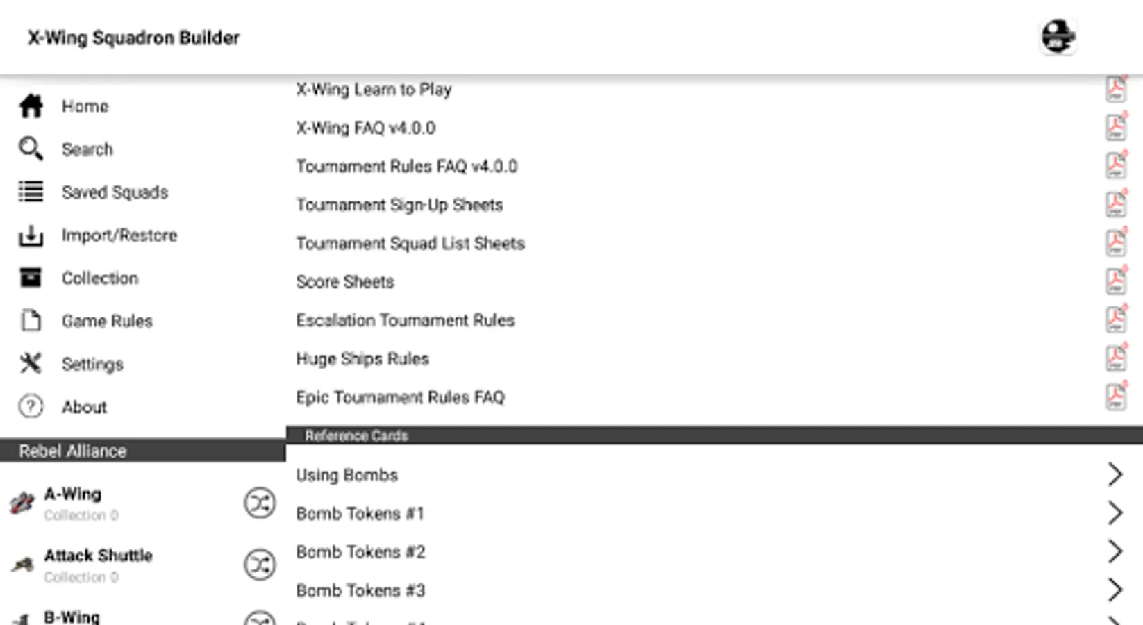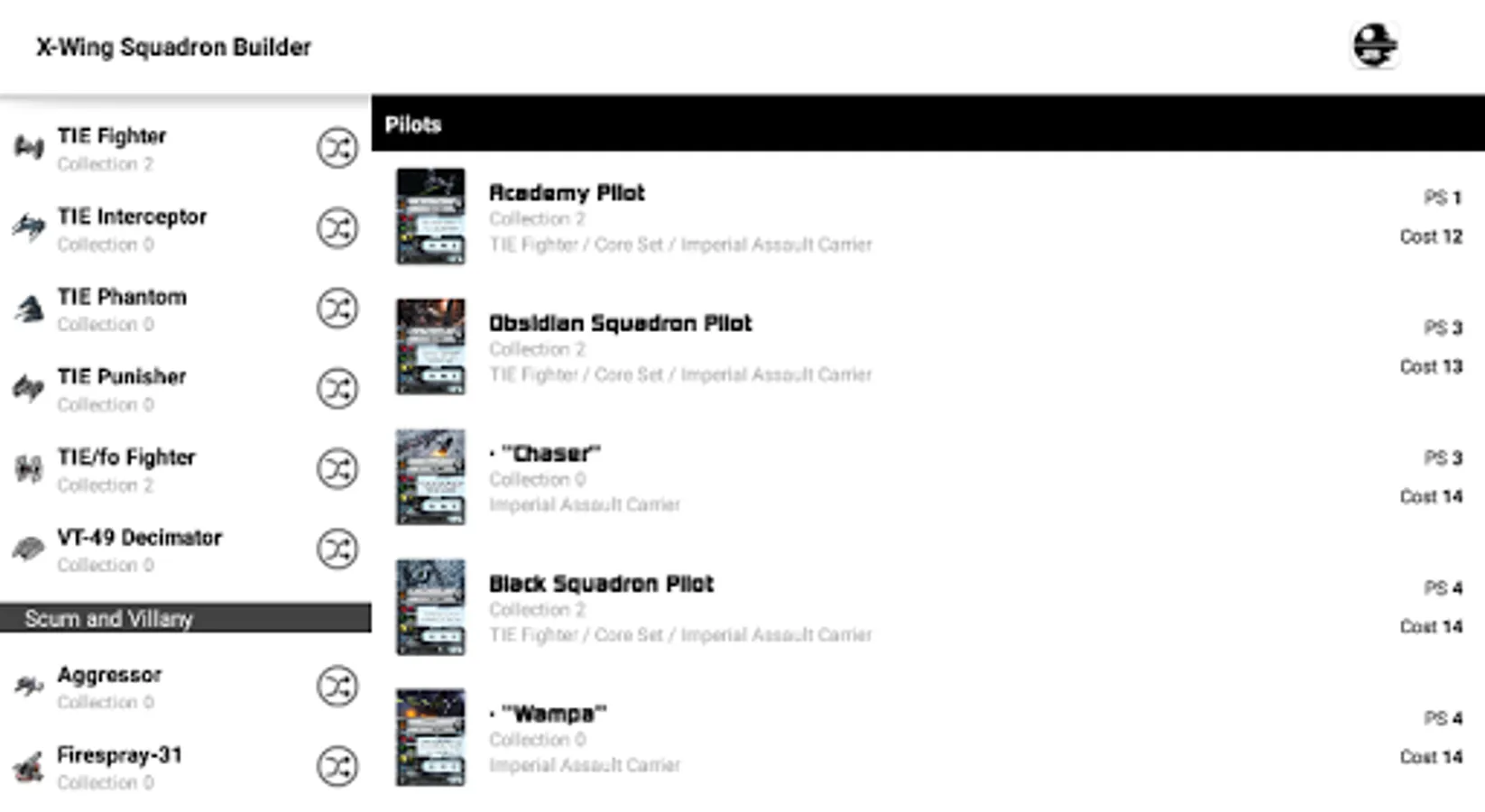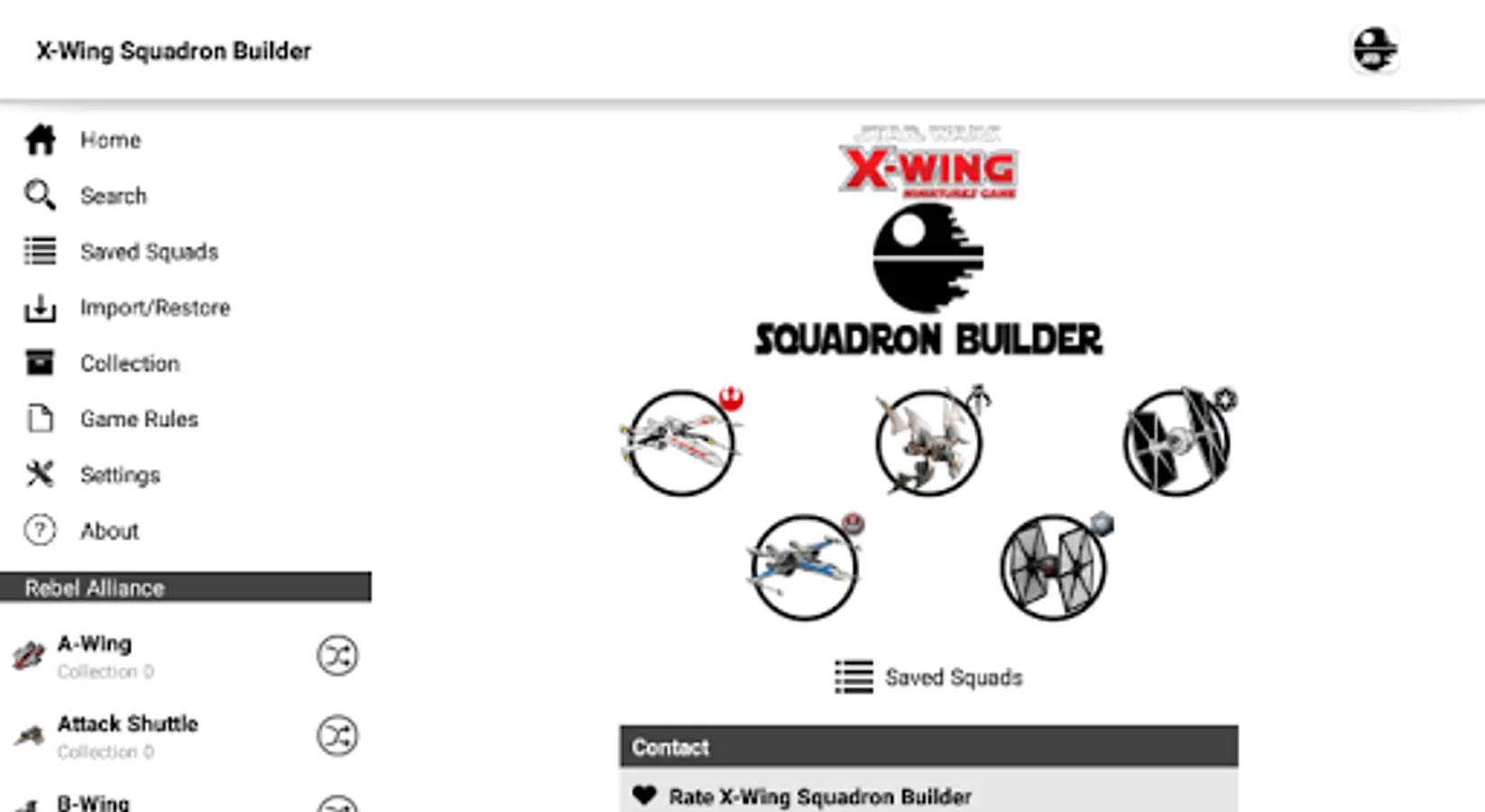 X-Wing Squadron Builder for Android is an app for mobile devices developed with the purpose of serve information to X-Wing’s players in the creation of squads for standard and championship games.