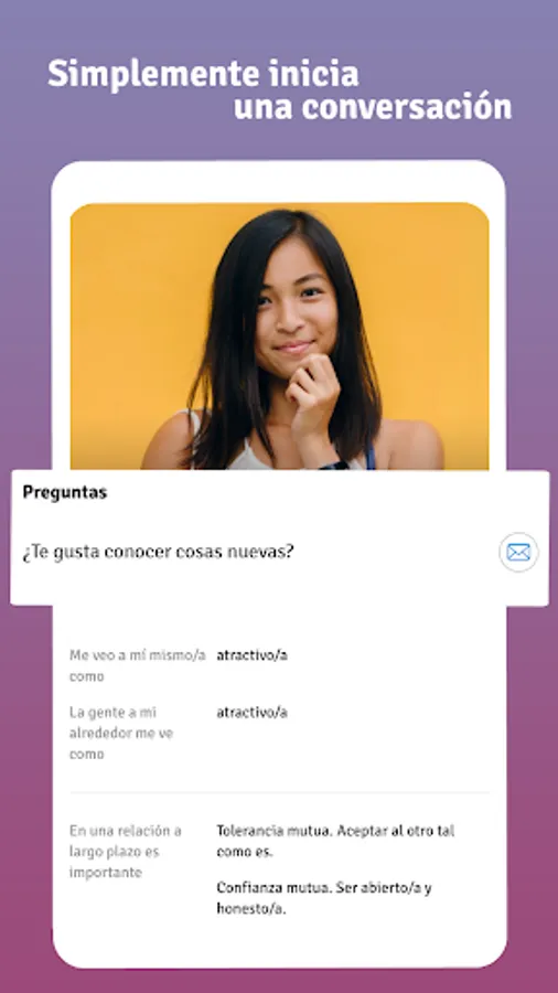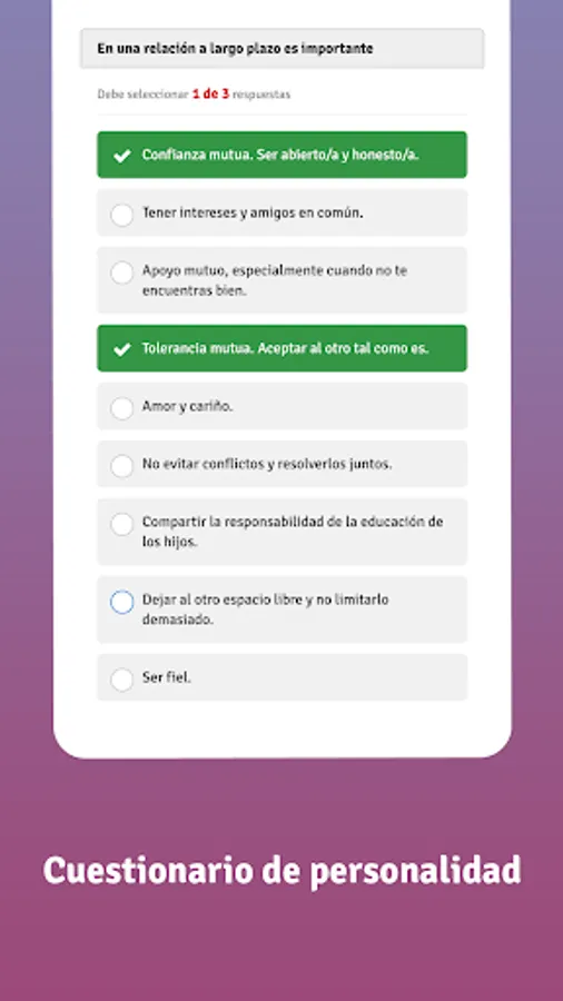 Based on a psychometric test and a data pairing system, we will send you the profiles of the users that are most compatible with you.