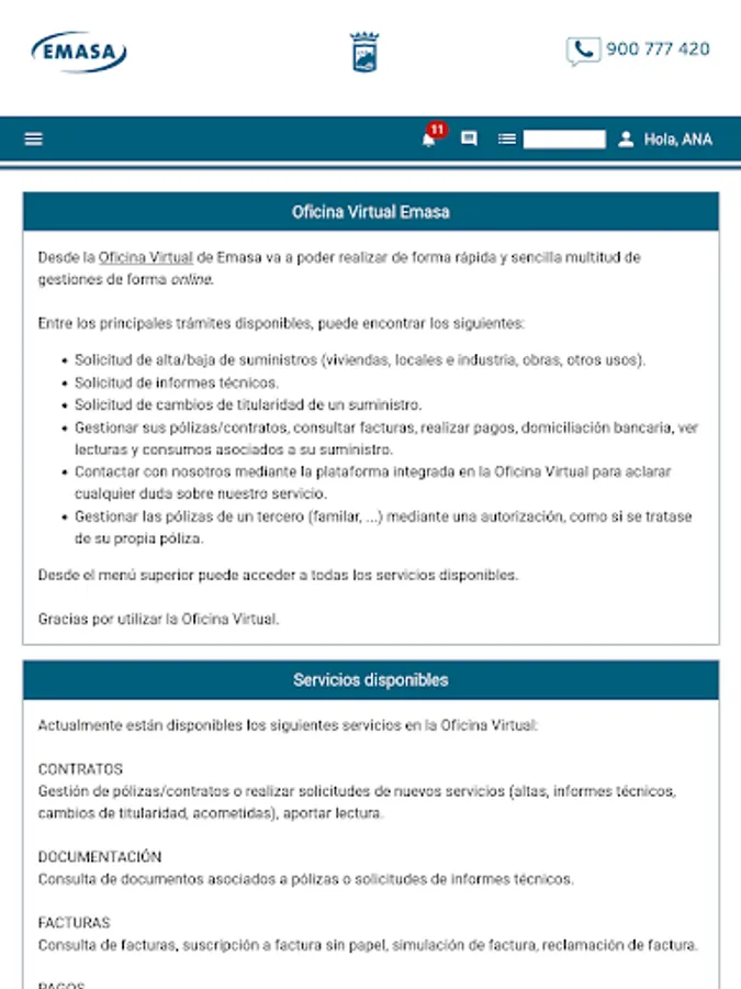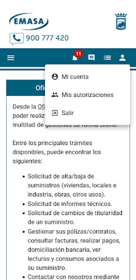 - Consult invoices, subscription to a paperless invoice, view consumption history, consult readings, ...