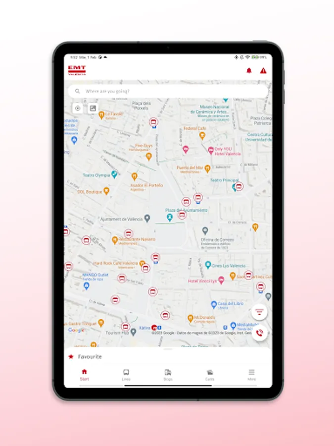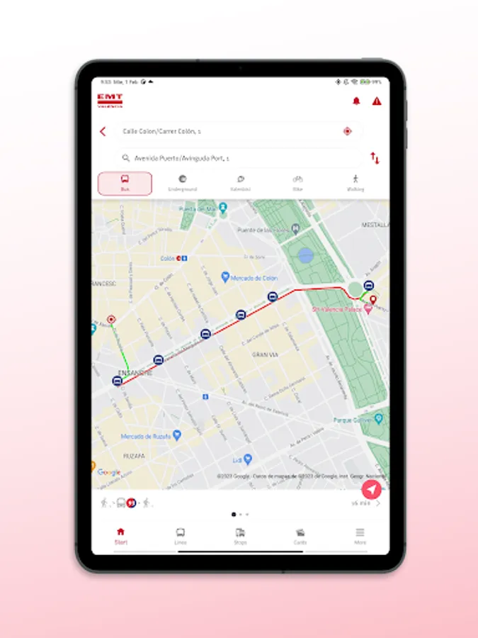 • Lay out layers with info of EMT bus stops (with arrival info), metro (station routes) and Valenbisi (with stations or bikes availables).