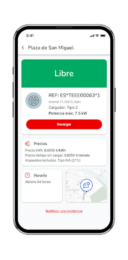 - See all the recharging points in the area you want, know their characteristics, rates and the state in which they are.