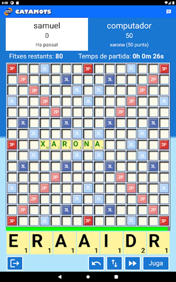 You can play from your computer with the web (www.catamots.cat), or from your mobile or tablet with the app.