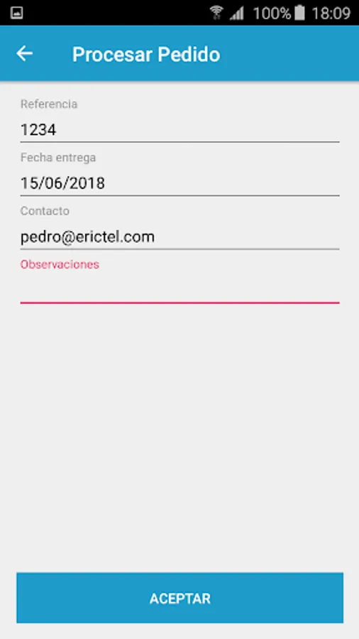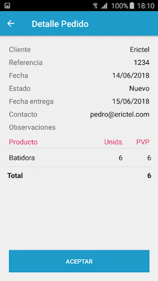 Oriented solution to increase the productivity of sales personnel, related to the solicitation of orders, which allows remote creation, making inquiries of products in stock and available credit and identify stages of tracking sales to delivery.