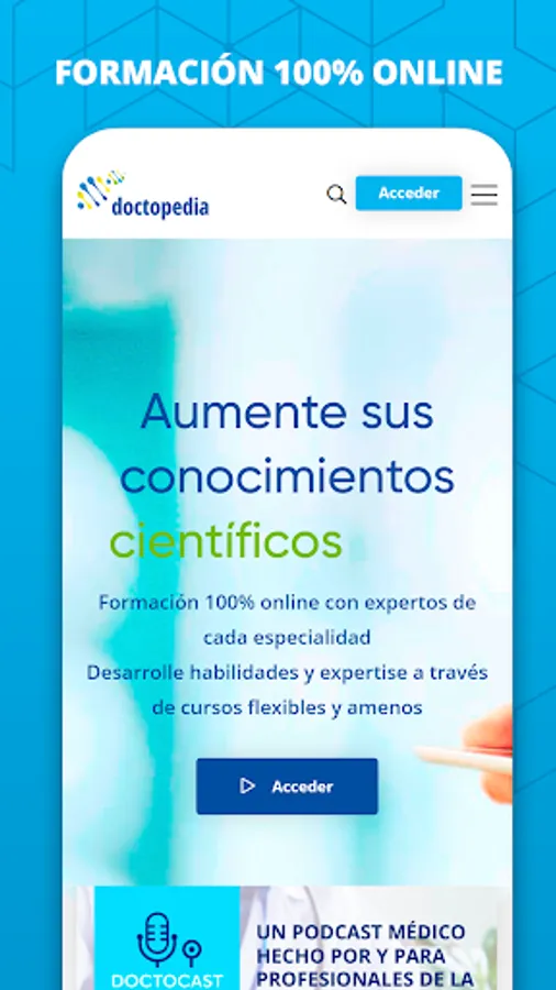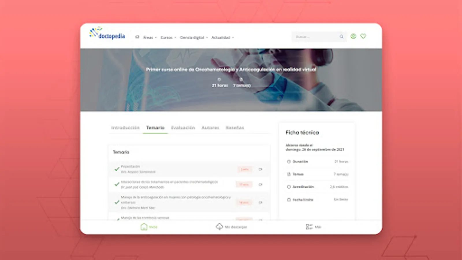 Doctopedia is an online platform for continuing medical education for health professionals in Spain. It has dozens of online courses that are renewed periodically, in a very visual and entertaining theoretical and practical training. Accredited by the SNS and of interest for the daily practice of their profession.