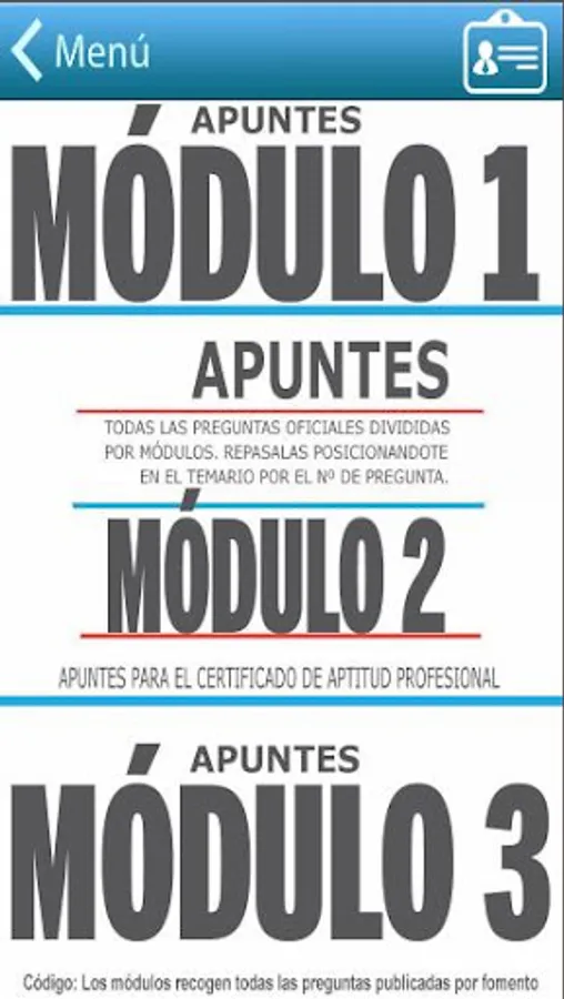 - Study in your spare time or downtime by taking tests of the modules you prefer