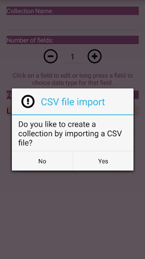• Than you can provide a name for your imported collection and by long press on a filed you can specified the data type for that field.