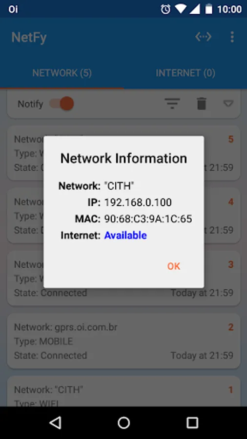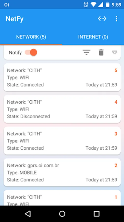The NetFy aims to keep the user informed about changes in your network transparent and subtle way. Doing all the background monitoring, providing more comfort and safety in the use of its network.