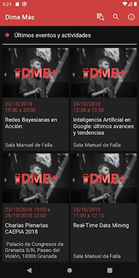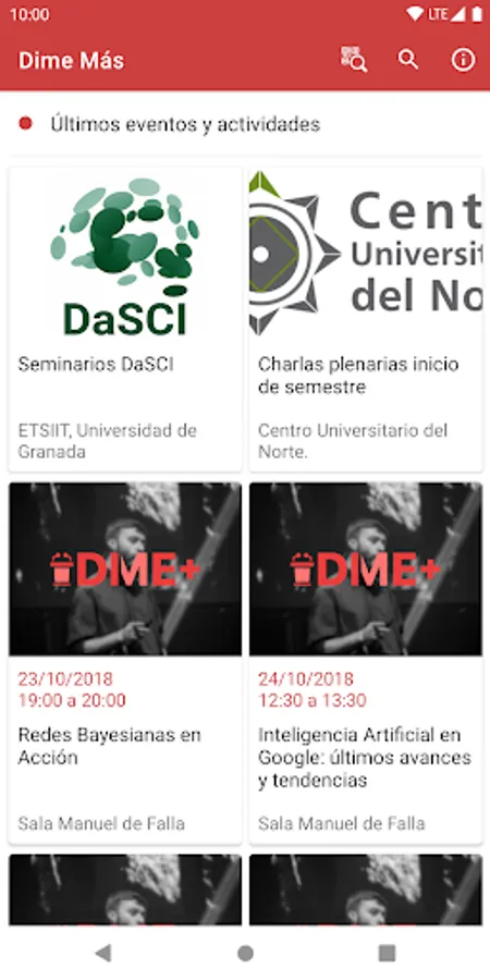 Dime + is an app platform for the evaluation of informative events that takes place in the context of a doctoral thesis at the University of Granada.