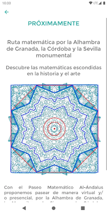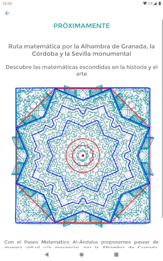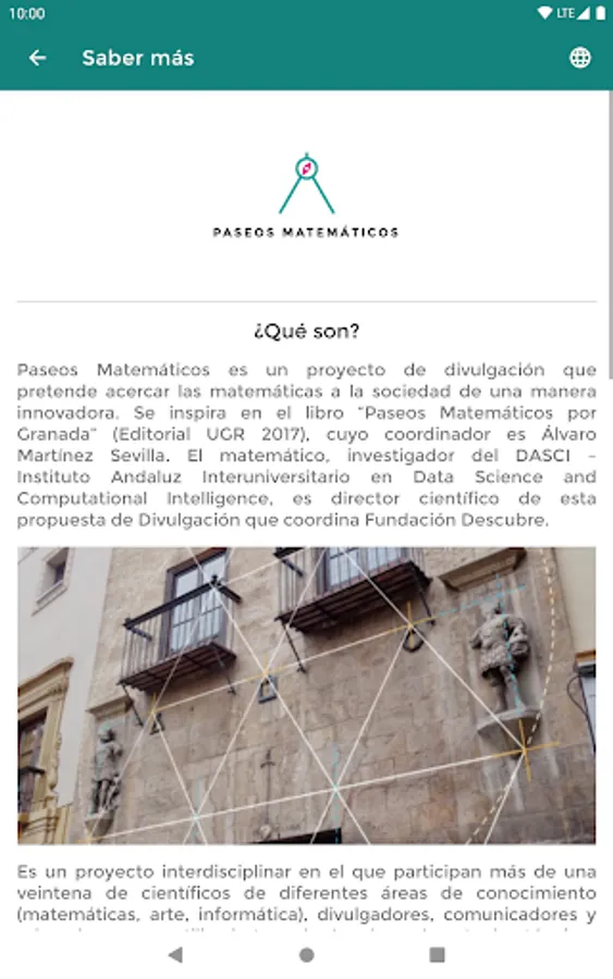 It is an interdisciplinary project in which more than twenty scientists from different areas of knowledge (mathematics, art, computing), disseminators, communicators and educators participate, which uses technology and the most current dissemination techniques to establish a dialogue between art. and science, between scientists and citizens, between science and tourism.