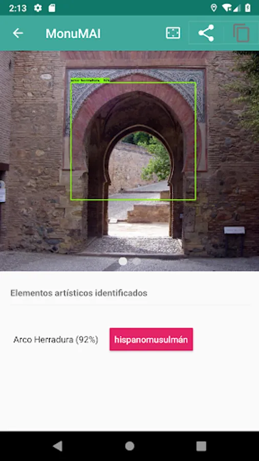 The application allows to identify artistic elements in photographs of monuments through Artificial Intelligence: