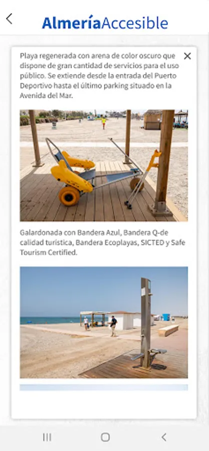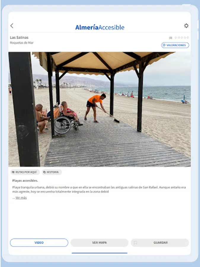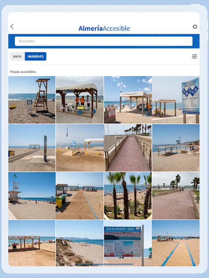 It incorporates the LIST OF ACCESSIBLE PLACES for consultation, with information of interest, images, videos and description of each site. In addition, it adds an INTERACTIVE MAP that geolocates accessible beaches and other digitized resources of interest, where you can see the file with all the details, create routes, save favorite places, rate them or get inspired by seeing what other users liked.