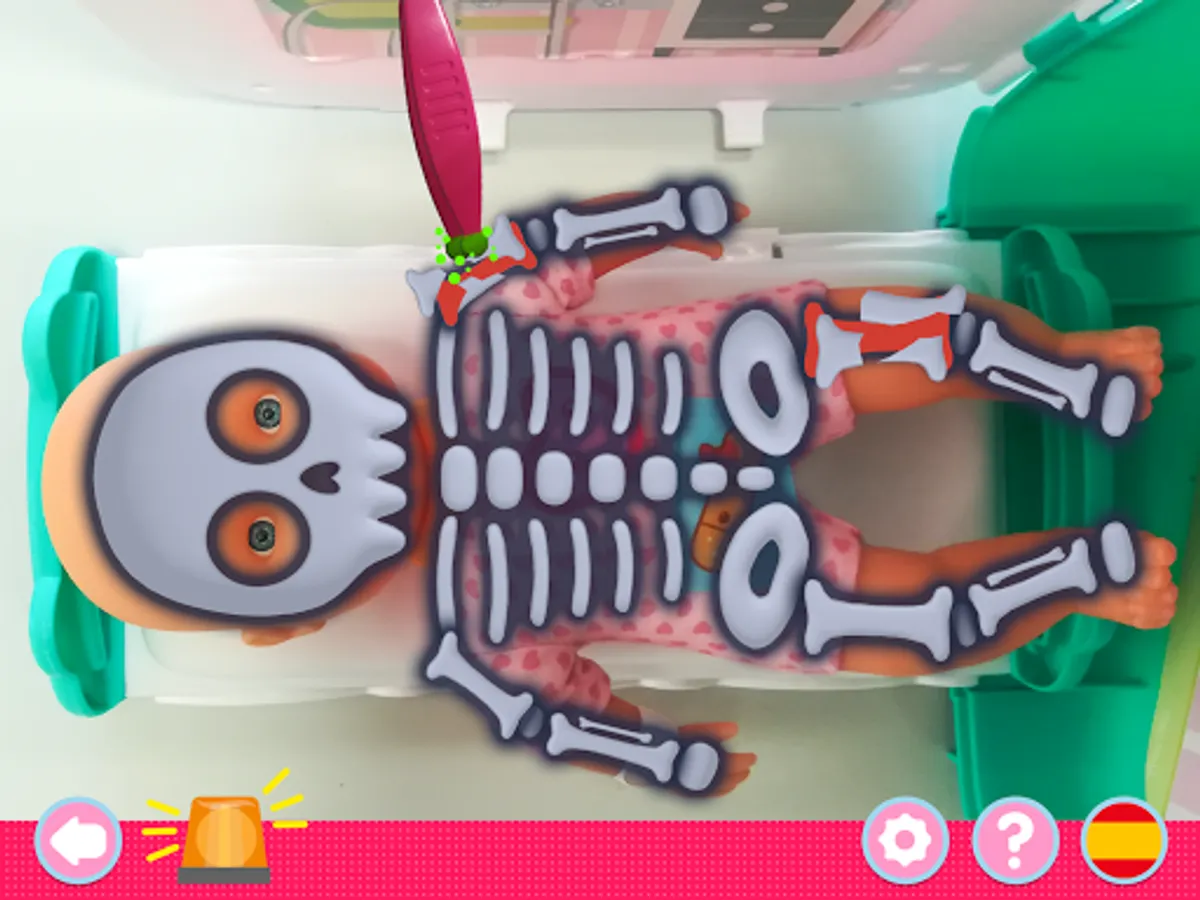 Nenuco has fallen? Run to URGENCIES, you have to operate! With augmented reality you can see if it has a broken bone and put it back on well. When finished do not forget to bandage.