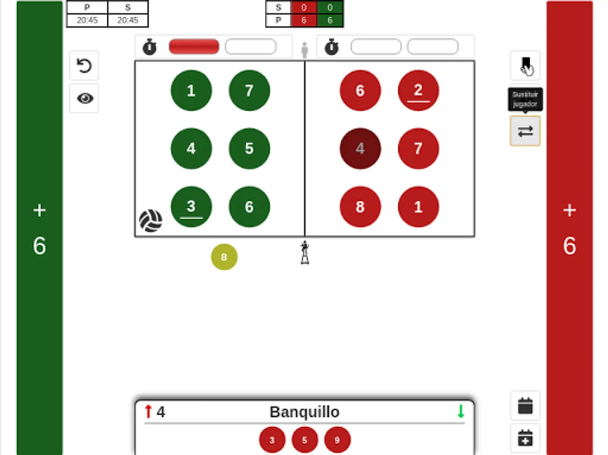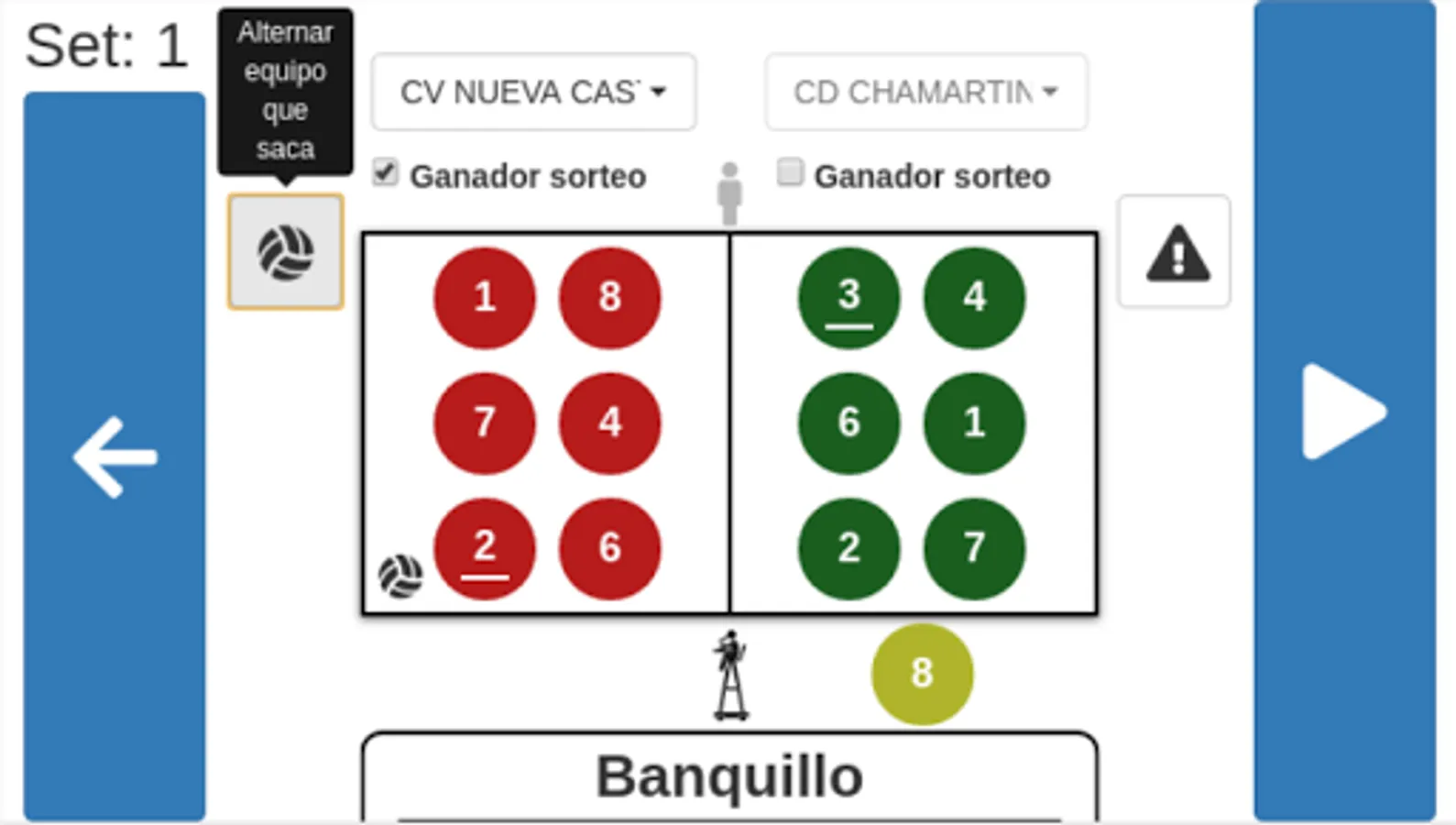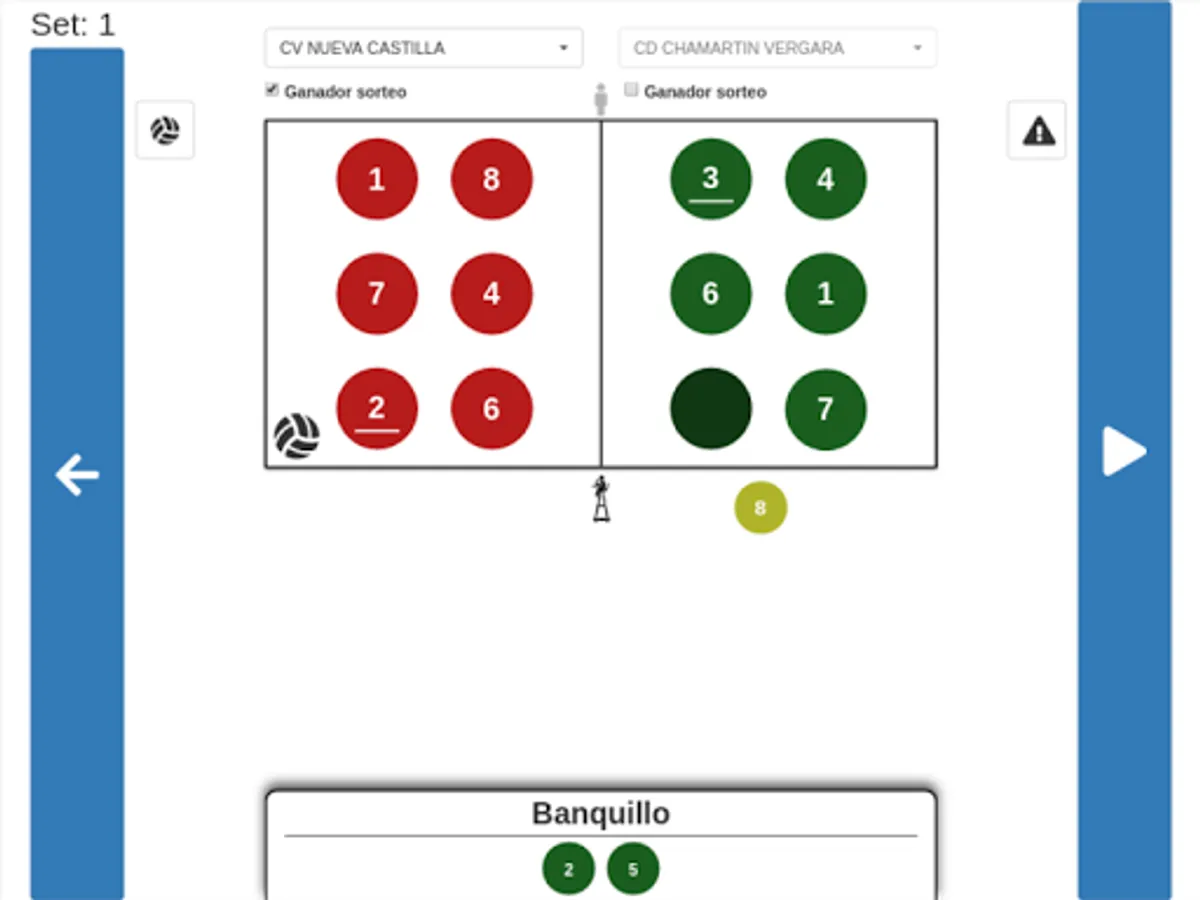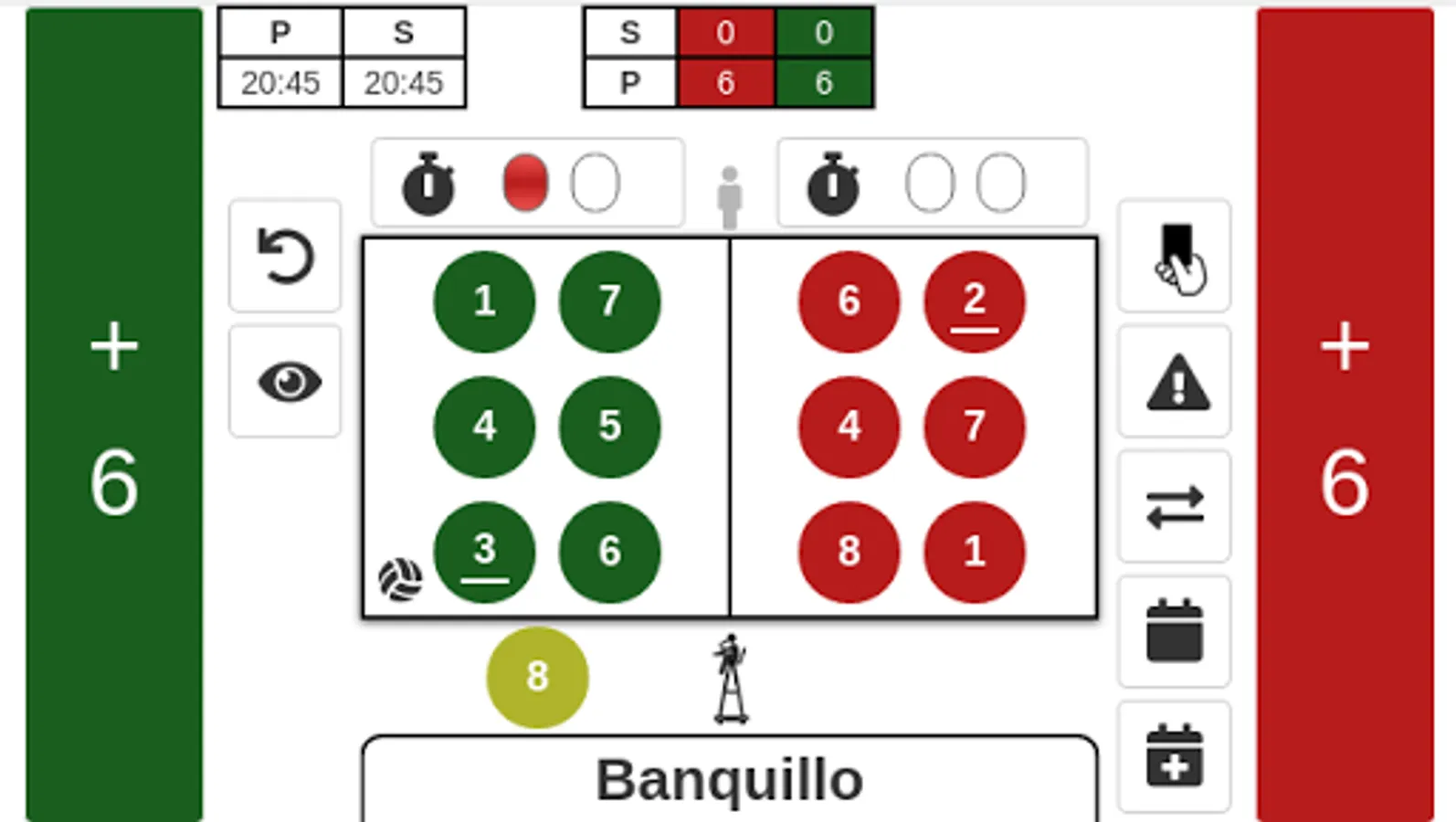 Not only can you focus on the game, but you can also quickly see what the position of the players should be, who gets the serve, in which field each team should be, etc. The application will warn you when there is change the serve, rotations, field changes, and the rest of situations dependent on factors to be taken into account during the game.
