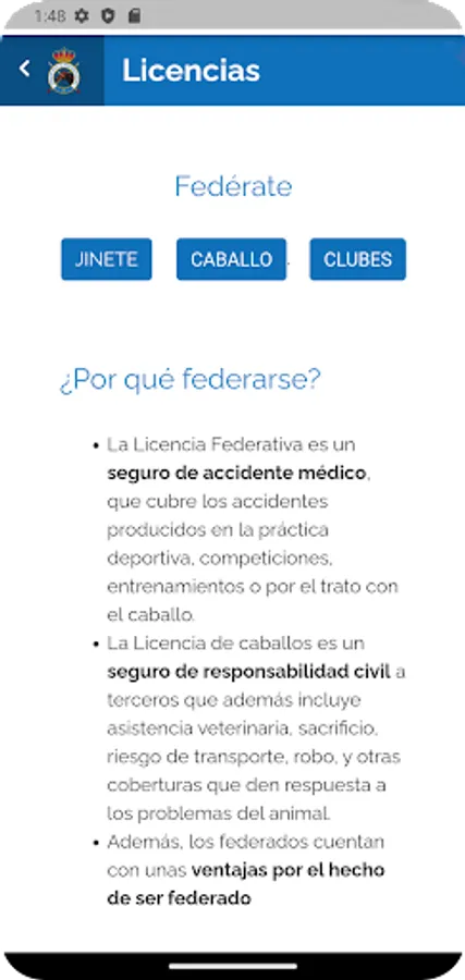 Application designed to display information related to the Equestrian Federation of the Principality of Asturias.