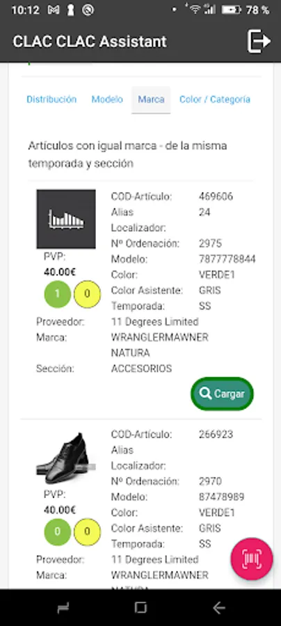 The CLAC CLAC sales assistant shows you the related items by brand, color, season, etc. of the item you have scanned.