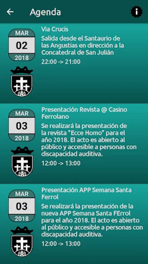 This app has been designed for both "ferrolanos" and tourists who visit Ferrol during Holy Week.