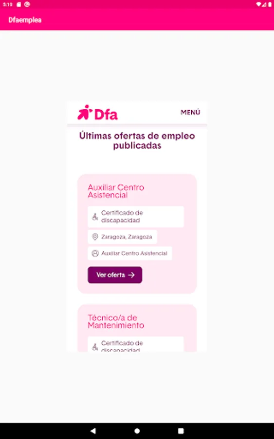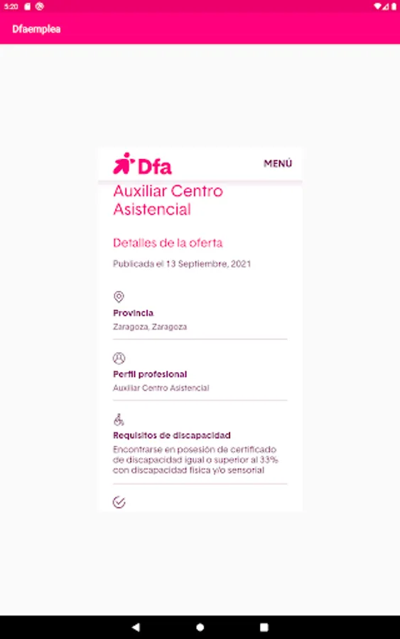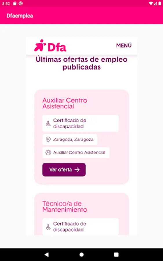 If you have and disability and are looking for a job, this is your app. DFA dfaemplea Foundation presents the first app of employment for people with disabilities in Aragon.