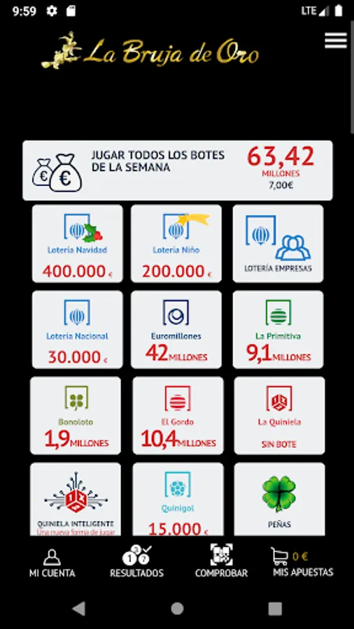 Remember, La Bruja de Oro is the most reliable free app to place bets on the Lottery, Quiniela, EuroMillions, Primitive Lottery, El Niño, Christmas, BonoLoto and all the Lotteries and Bets of the State of Spain. May LUCK be with you!